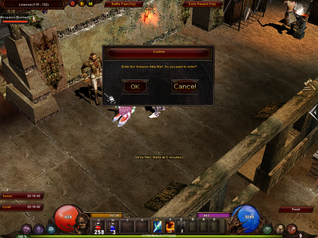 Para ingresar a Arka War deben hacerlo a traves de el Npc Sir Lesnar ubicado en Lorencia 114,132. Es importante ir cuando el evento sea anunciado.